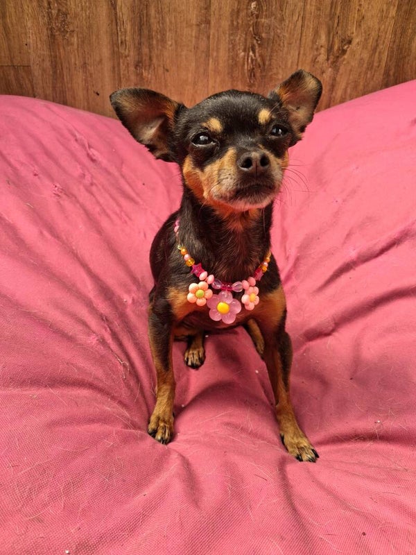 Leuke ketting voor onze kleine chihuahua Peanut